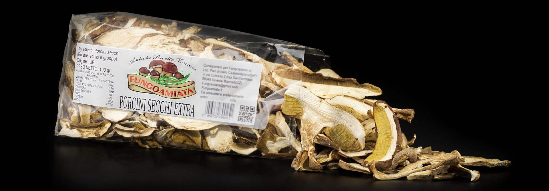 Porcini mushrooms of the boletus edulis type carefully selected, cut and dried in a natural way to preserve the smell, texture and all the other characteristics of the freshly picked mushroom.